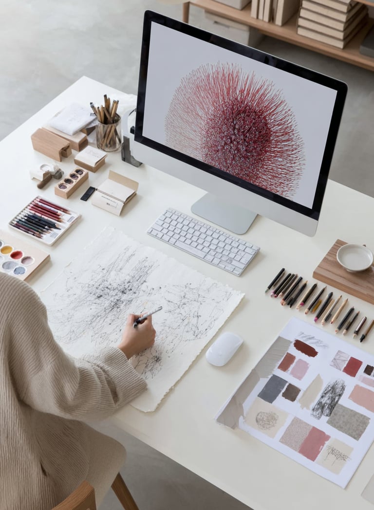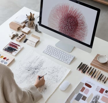 At Flow Designshop, my process begins with a thorough analysis to comprehend the genuine needs of my clients. Subsequently, I engage in graphic research and create preliminary sketches before transitioning to digital modeling. The design work for each project occurs in my art studio.
